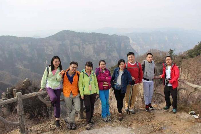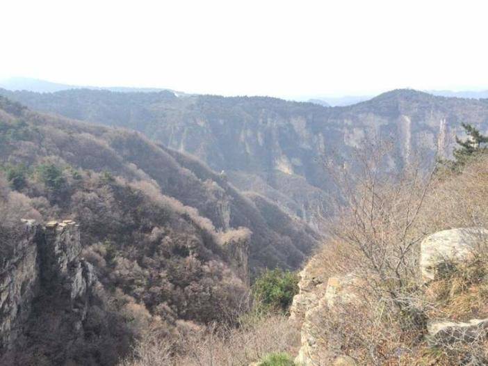 24日早上大巴直接到了王莽岭,我们住宿的农家,早餐,玉米碎熬的没有一丁点味道的粥,自己做的馒头还有红豆陷包子,几道简单的农家小菜,吃饱喝足,身体略有余温,大巴行至王莽岭景区 ,下午游览王莽岭,又有一个有历史故事的地方,相传西汉王莽追赶刘秀到此安营扎寨,故名。王莽是谁?刘秀又是何路神仙?我并不知道,容我度娘那学习学习。海拔估有1700米以上,站在垭口边,山顶的风要把人吹不见了,气温骤降,只有单薄皮肤衣的我已冻成狗。汪汪~~~王莽岭被称作“太行至尊”,要想一睹太行英姿,此处正合适吧。56个山峰错落有致,秋日的山上看不到绿,深秋的枯黄是另一种美,悬崖边观望,看不到尽头的山脉,向游客展现它的雄姿。