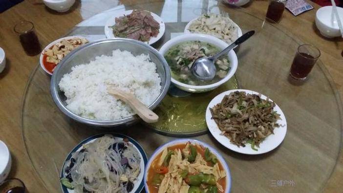 雨势渐大,我们并没有去黑龙潭看瀑布,直接包车前往郭亮洞—绝壁长廊,另一条挂壁,通往郭亮村:中华第一影视村,古朴的村落,可能是并没有仔细的一探究竟,说不上来特色在哪,走马观花的看了几间小屋。潘长江的《举起手来》就是在这个村取景,然后就红了吗?我无从得知。在村里,我们找了一家菜馆吃上了热腾腾的午饭,红烧六指鸡,野菜大杂烩,野菌汤,河南特色卤面,山西特色凉皮,等等十几道踩吃的伙伴们满足。