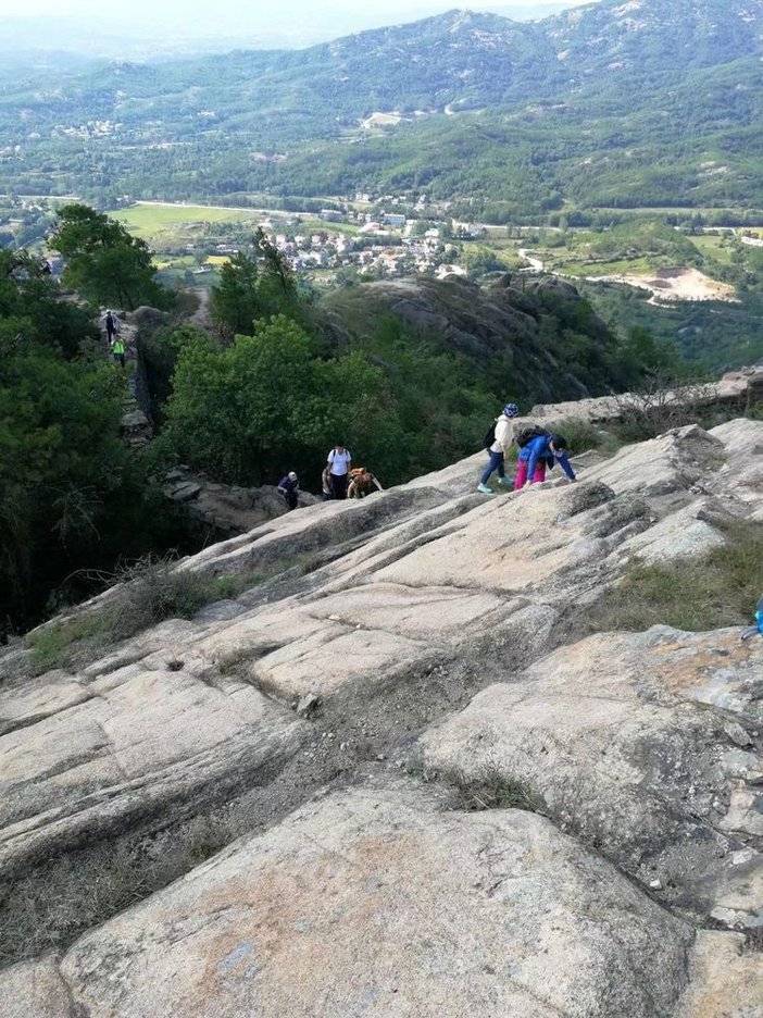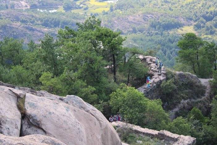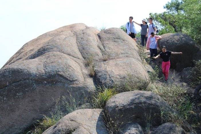 光滑的石岩攀爬需要手脚并用哦