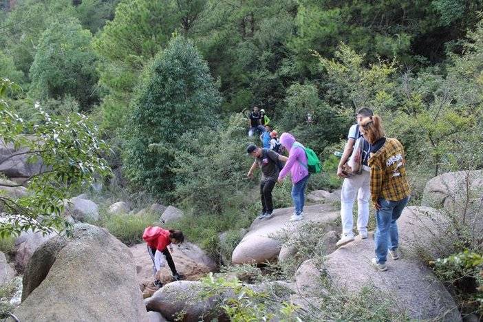 今天我们顺利完成了徒步穿越任务,全程用时五个半小时,克服了一个个困难,收获满满的:累并快乐着!不虚此行,我们三人一起来个自拍吧✌✌✌