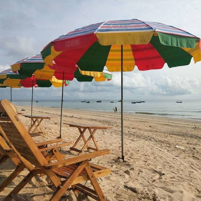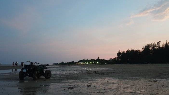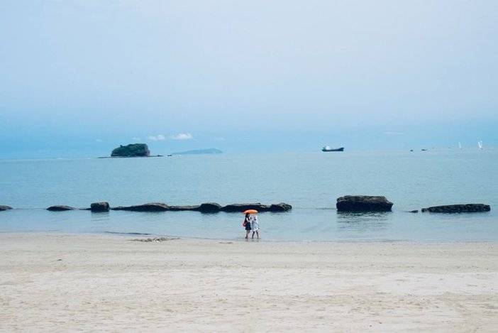 在太阳挂在45°的时刻,我们抵达防城港白浪滩边,有点意外海水像开水一样烫脚。黑色沙滩著称的白浪滩成功被夏季游泳占据,短暂的拍拍照片,我们就回酒店休息,一路湿热的体感只希望每晚求空调续命。