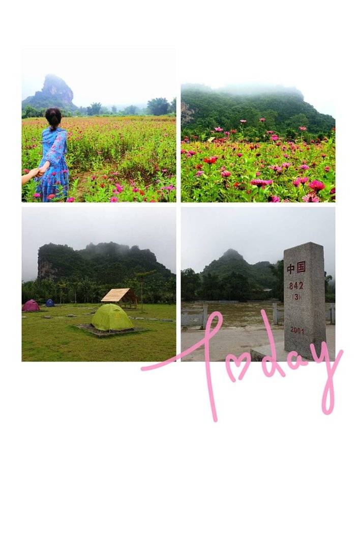 由于涨水明仕田园《花千骨》拍摄地停止水上竹筏项目,咱们临时改通灵大峡谷,至此开始后的每天全身湿了干干了湿的节奏开始。峡谷的瀑布水量可能是在等我们来陡然宽很多。峡谷充沛的水雾让走到峡谷上面的我们看到云雾环绕山中。很短暂的路程时间我们就到民宿,晚餐吃的当地特色春卷和龙须菜。老板娘介绍村子附近有一处花海临着中越界碑,夜色深邃建议我们早上去。大家在群里讨论第二天早起后结伴去溜达一下,领队决定早餐后带大家一起去耍,全车最帅的仔。