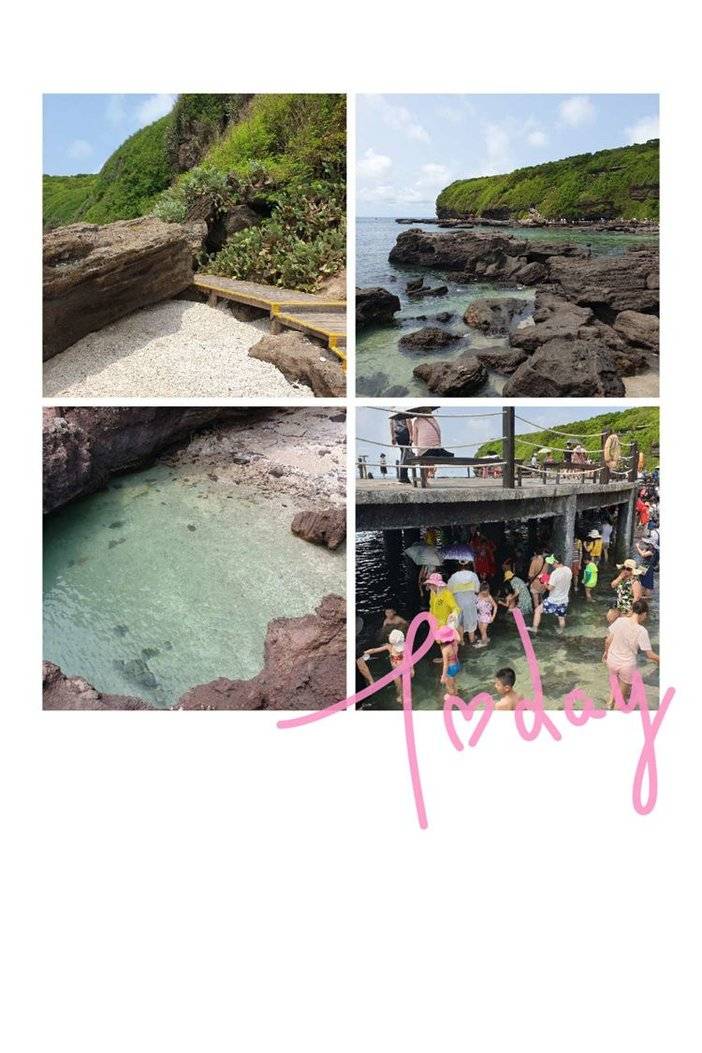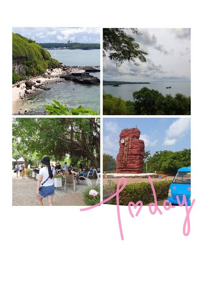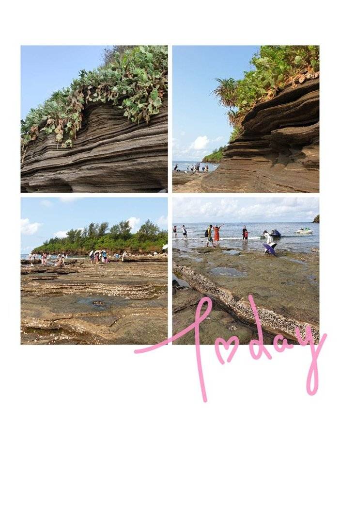 今天包了一辆10人坐的电瓶车200元环岛一圈。第一站五彩滩,这里主要是看地质岩层。意外的看到空军的一架飞机低空在头顶上巡逻。