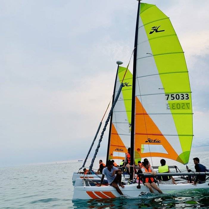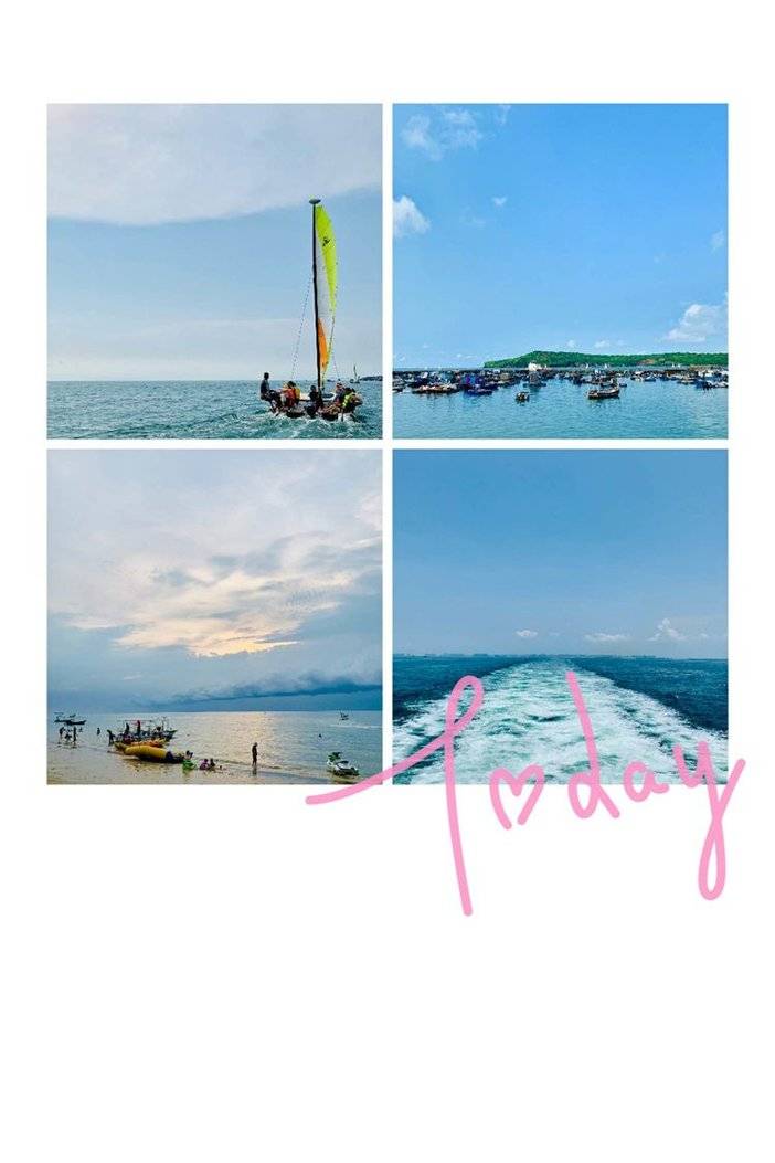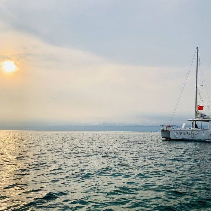 清晨的朝霞妩媚动人,沿海公路干净又明亮。中午抵达码头,利用这个时间我们临时小队去银滩打卡,原本有个银球的标志广场现在处于维修中。沙滩皓白,借着中午炽热的日头,行走间就差一撮孜然,大家都觉得还是回到码头靠谱。