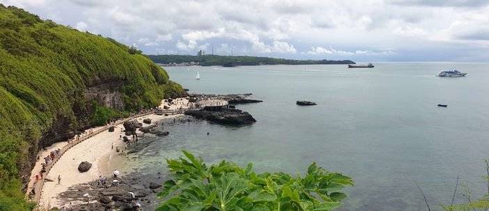第二站鳄鱼山,这里人比较多,又是整个岛上最集中的精华景区。观景平台处正好俯瞰火山口,还是那架空军飞机巡逻时我们也拍到照片,可惜不如肉眼看得清楚真实。下山到岸边时,没觉得有多值得,就是一个火山口留下的痕迹。栈道顺时间走一段,惊喜才慢慢呈现出来。水特别干净蓝蓝的,白色的珊瑚沙滩,亲水活动在此得到足够的升级。