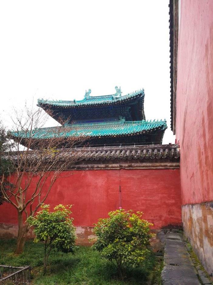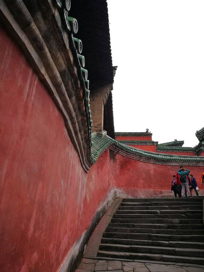 九曲黄河墙。71米长的红色夹墙,墙体厚1.5米,高2.5米,浑圆平整,弧线流畅悦目;配以绿色琉璃瓦顶,犹如两条巨龙盘旋飞腾,无论从什么角度欣赏,都给人以美感,体现出皇家建筑的气派和豪华。