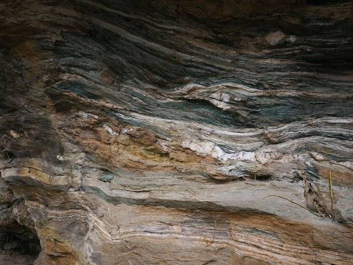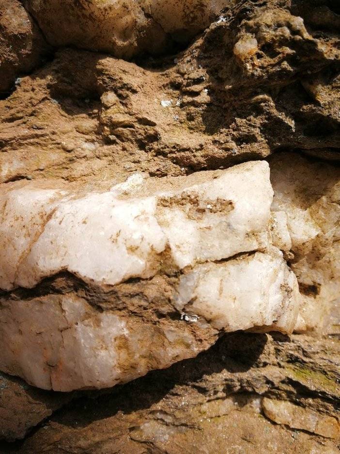 闪长岩为典型的中性岩,整体呈暗灰色。其中主要成分为白色的斜长石和深色的角闪石,还含有少量的辉石、黑云母和石英等。斜长石晶体常呈板状,集合体成粒状,白色或灰白色。此处为石英闪长岩。