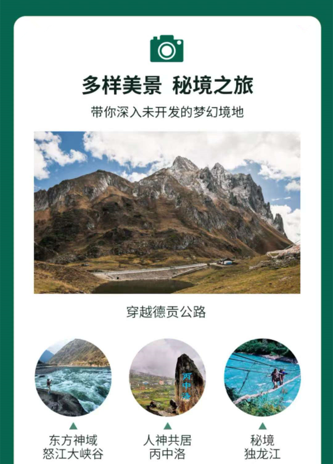 早餐后(全天换小车)前往贡当神山制高点观赏拍摄怒江全景风光,游览拍摄丙中洛:怒族石板房、雾里村,徒步滇藏茶马古道。