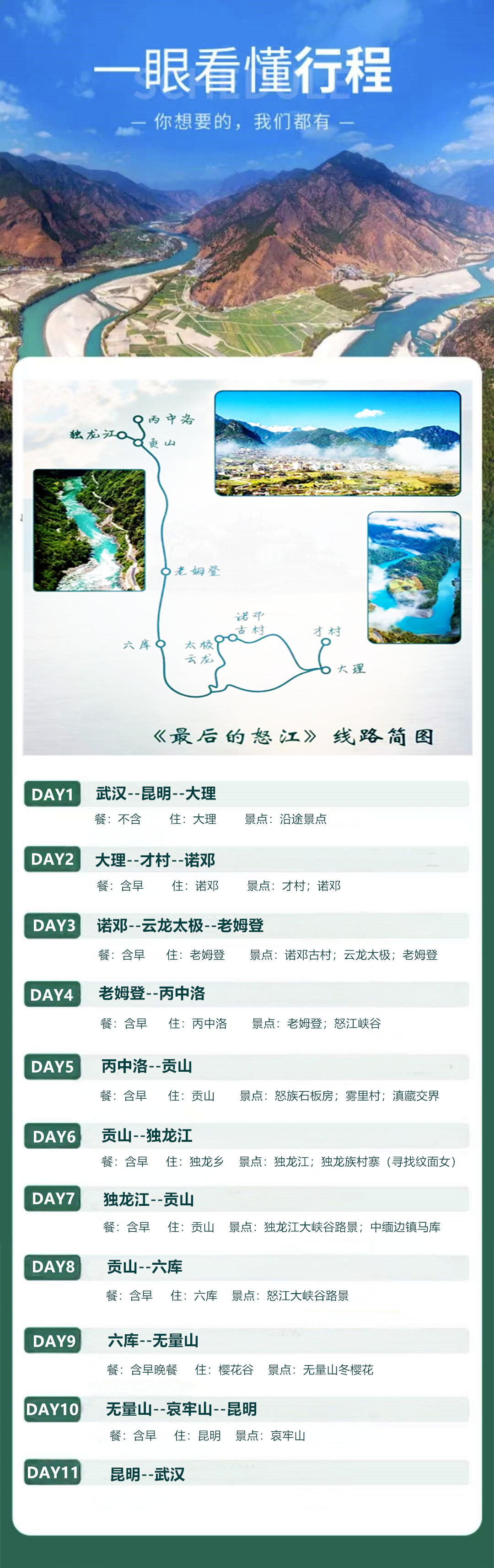 我们一直沿着独龙江大峡谷深入,一路尝试险渡藤条桥,发掘原始村落,探秘最古民族-独龙族,寻找独龙族神秘的-纹面女,现“纹面”已经成为独龙族文化的“活化石”。晚宿独龙乡