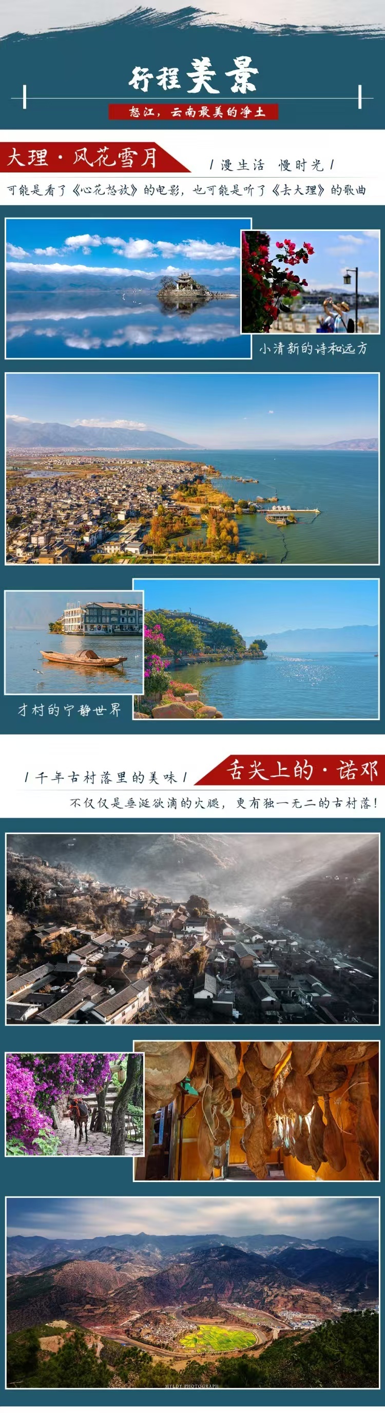 早餐后前往才村,随后乘车前往千年白族村--诺邓古村,参观闲逛古村,感受体会特色古村文化,晚上可一起品尝诺邓火腿(《舌尖上的中国》第二季第一集就有介绍哦),让你来了都不想走,晚宿诺邓古村客栈。