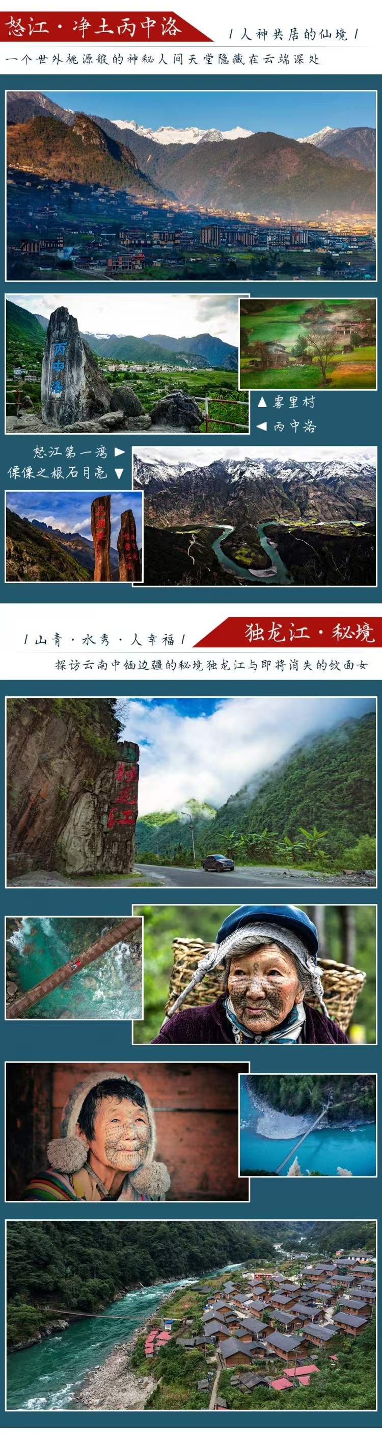 适时前往记忆之城知子罗,原本是怒江傈僳族自治区的政治、经济、军事和文化中心。穿行于怒江大峡谷深处,看高黎贡山、碧罗雪山、集市、流泉飞瀑、白云深处人家、傈僳族村寨,观远处维拉坝睡美人,沿途一路是峡谷风光。晚宿丙中洛镇。