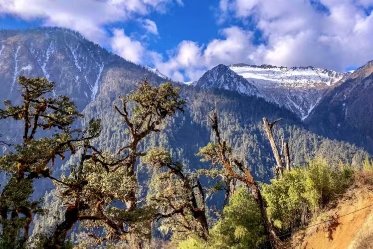 早餐后出发换乘小车前往神秘的独龙江,沿途欣赏国家一级保护的贡山秃杉,可以眺望碧罗雪山和挡当力卡山,南磨王山等。独龙江被专家认定为野生植物天然博物馆,是我国原始生态保存最完整的区域之一,那里居住着古老封闭的民族--独龙族。