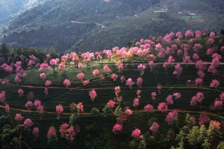 早餐后前往无量山樱花谷。无量山的樱花为冬樱花,花期较早,加之低纬度地区的温暖气候,使其成为云南早春的代表。当驶入樱花谷,便被绿野中五彩缤纷的樱花所吸引,走进茶园,那满树云樱,若隐若现的嫩叶,总会让旅行者如醉如痴。今晚就入住在樱花谷,潜心感受。