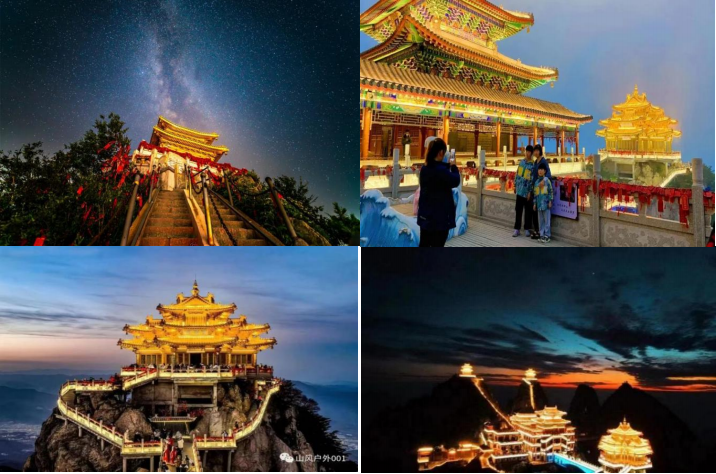 观赏老君山夜景~当夜幕降临,老君山就开始了它的华丽变身,亮灯那一刻,仿佛时间都为其停驻,整个金顶沉浸在一片璀璨的光芒之中,相信你一定会被眼前的景象所震撼!