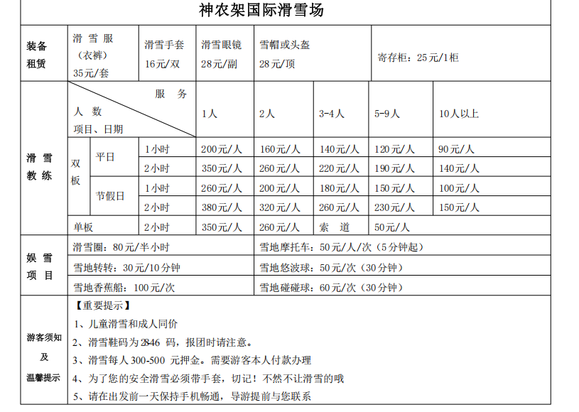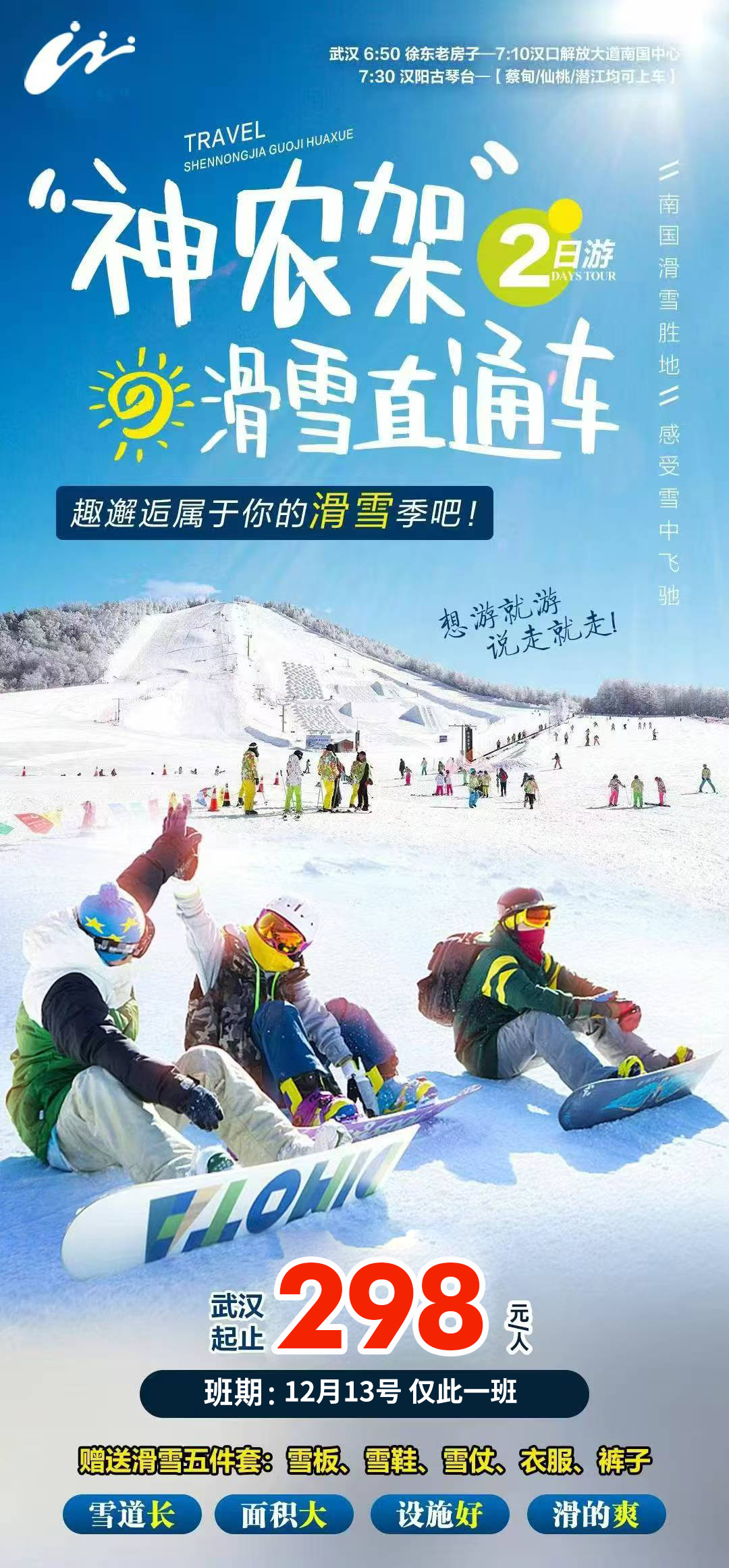 特价298元【神农架国际滑雪场纯玩2日游】12.13-14号 含滑雪5件套 [复制链接]