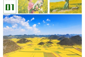 下午晚点前往罗平【金鸡峰从】,峰丛中万亩金黄油菜花美不胜收,天气好可以拍摄到耶稣光射到云雾中若隐若现的油菜花以及金鸡峰群中。