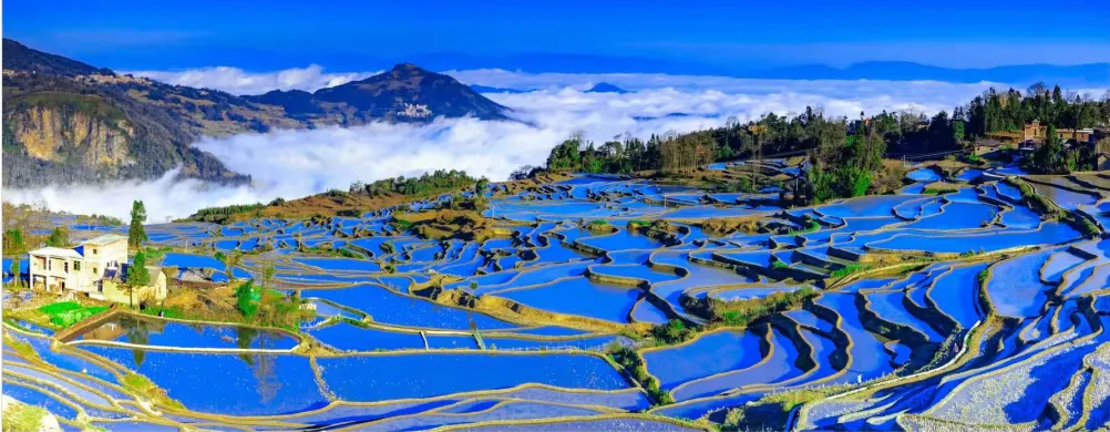 亮点:多依树日出+蓝色梯田+阿者科村蘑菇房+梯田轻徒步+朝阳楼+朱家花园+十七孔古桥,一路风景撑爆您的眼球!