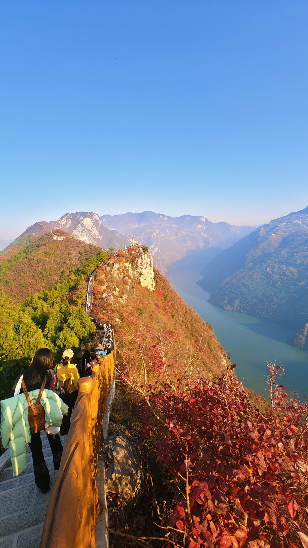 早餐后我们乘车前往巫山文峰景区,乘坐景交车+徒步三峡龙脊(免去了拔高1040米的台阶路),进入冬季,文峰山上漫山红遍,十分壮观。沿三峡龙脊古道徒步,全程徒步约5公里,耗时约3-4小时,强度和难度都不大,老少皆宜。可以边走边玩尽情打卡“三峡最美徒步线路”漫山红遍,中餐自带路餐饮水。