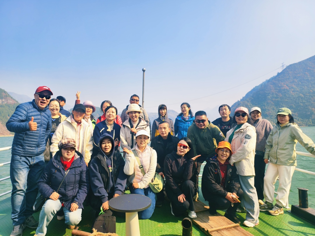 船游巫峡满江红、登翠屏峰,观巫峡大拐弯和神女峰、飞凤峰全景