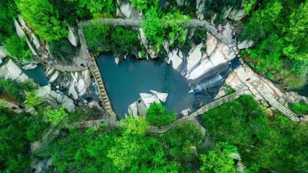 石川内长年泉流不息,泉水随着山势起伏跌宕而下,形成近百个形态各异的石穴潭池,宛如一条巨龙在山谷中潜伏。自景区入口拾级而上,迎宾潭、老龙潭、神龟潭、双龙潭、福禄潭、五连潭、情侣潭等,一水一潭,一潭一景,72个天然水潭! 潭潭相连、瀑瀑相连。