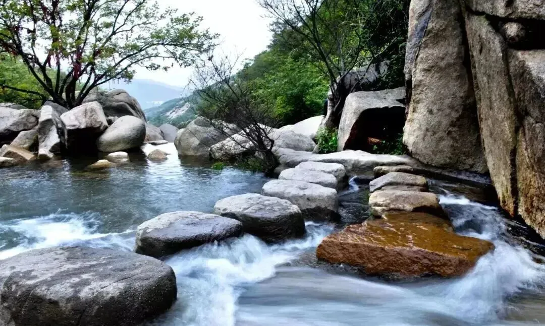 石川独石成山,沿途非潭即瀑,天然形成的巨石像一块洁白的帷幕,彻头彻尾地铺盖在山谷中。或凸或凹,或皱或展,形态各异,给人带来无限遐想。