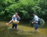 看-----那几位热心的帅哥在背着我们的美女过河:妹妹啊,我那么的辛苦背着你,回头别忘了在扣扣号上加我为好友啊...