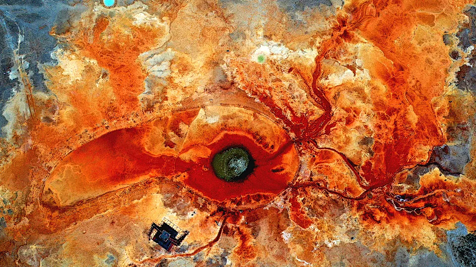 随后来到昆仑山下的神圣泉眼【艾肯泉】形状似椭圆的艾肯泉,周围寸草不生且形成了一个红褐色的圆形,艾肯泉的正中央便是汩汩而出的泉水,这便形成了一个巨大的“眼睛”,被人称为“大地之眼”。泉水最终汇入尕斯库勒湖;无人机升起之后,滚滚的泉水,伴随着周边鲜艳又复杂的地道给人一种震撼的感觉。