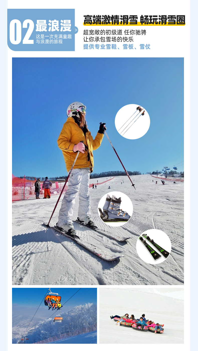【滑雪畅玩】赠送雪场不限时滑雪,雪仗、雪板、雪鞋、头盔都是赠送使用的(儿童不赠送)