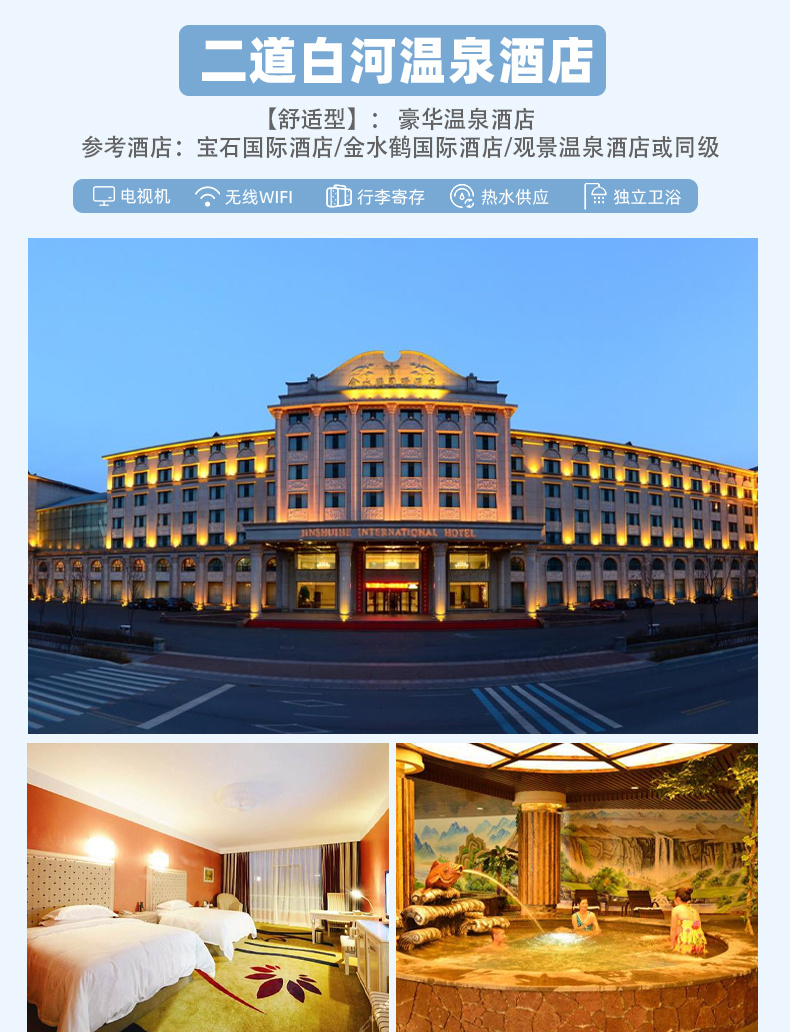 参考酒店:宝石国际酒店/金水鹤国际酒店/观景温泉酒店或同级