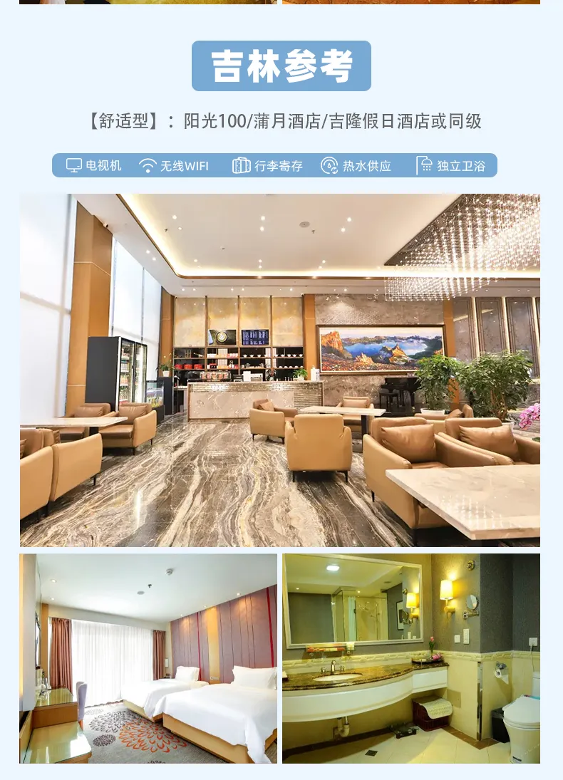 参考酒店:阳光100/蒲月酒店/吉龙假日或同级