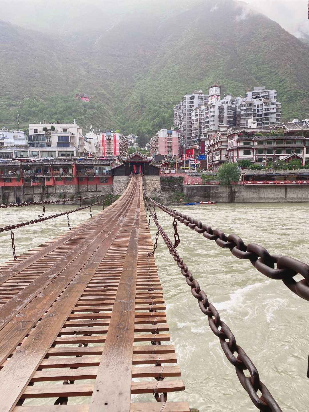 无桥墩,仅靠13根铁链和木板横跨大渡河