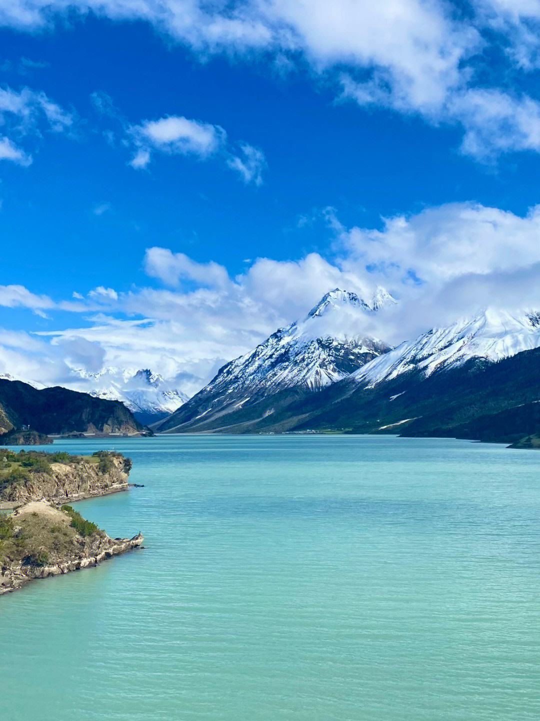 然后翻越安久拉山(海拔4475米)后抵达然乌,然乌湖是帕隆藏布江之源,草地、森林、树影以及白色的水禽和湖岸浅滩五颜六色的卵石,和着碧蓝的湖水、白雪皑皑的雪峰,景色如诗如画。狭长的湖面向西蜿蜒十余公里逐渐收缩成一道河谷(然乌湖的景色因季节变化而不同)。