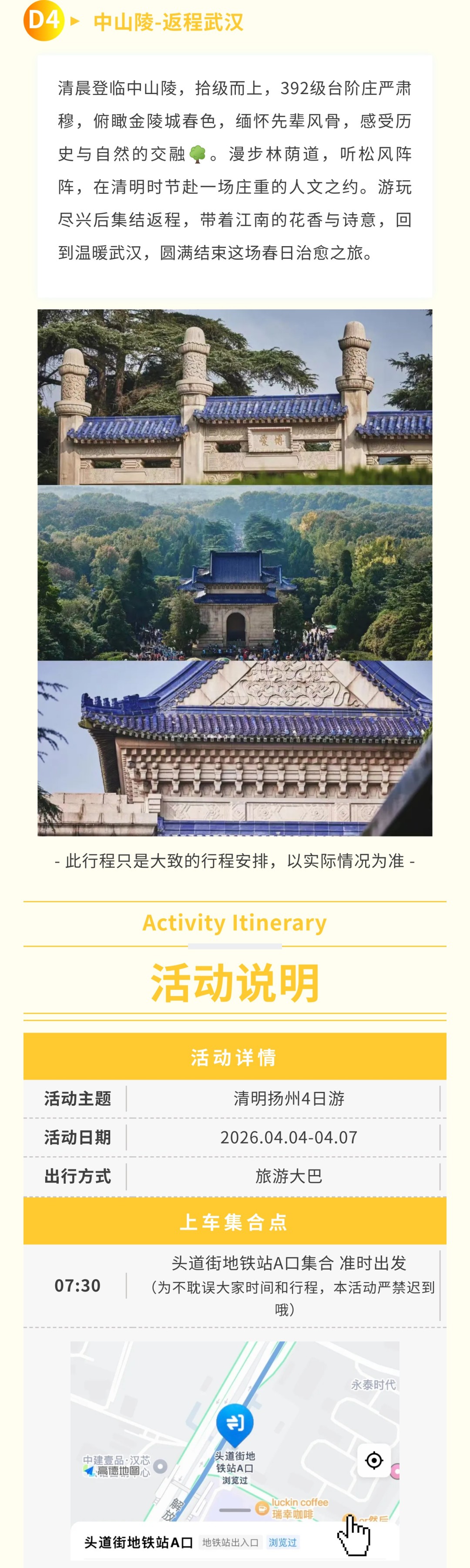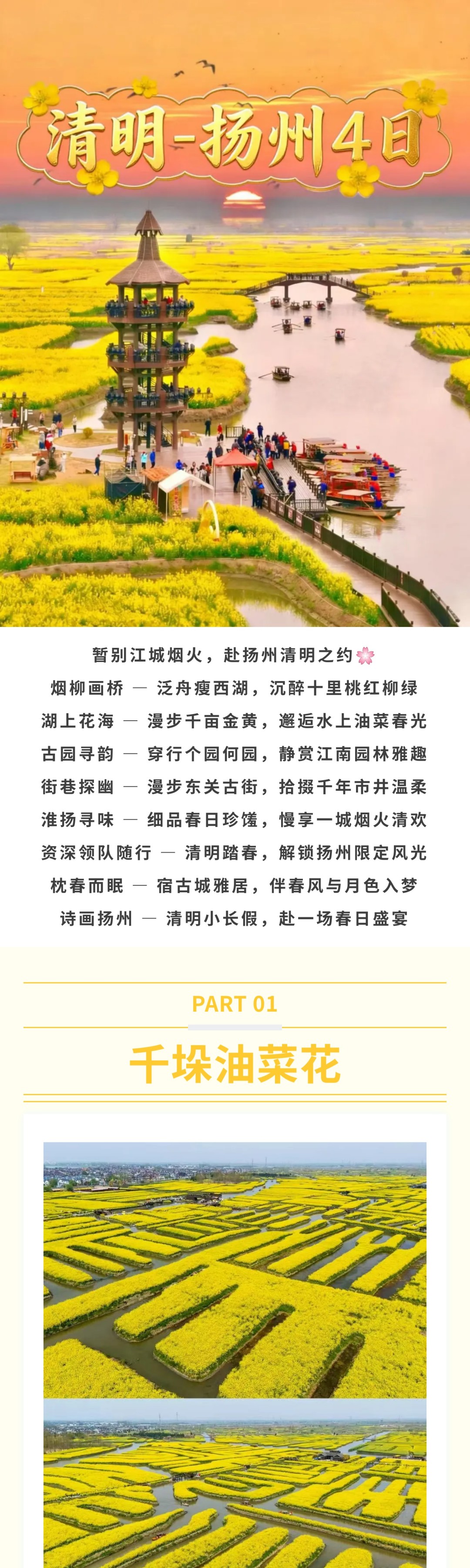 【清明·扬州4日游】4.4-4.7 泛舟千垛水上油菜花海 漫步瘦西湖烟柳画桥 瞻仰中山陵百年风华 [复制链接]