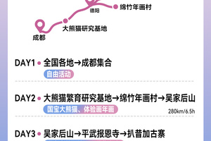 成都熊猫基地→ 绵竹年画村 → 吴家后山