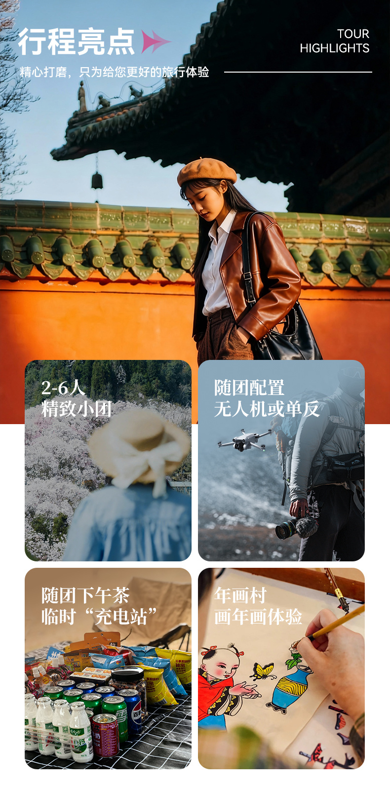 1. 交通:全程包车往返,根据人数安排合适车型。