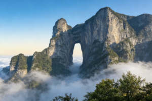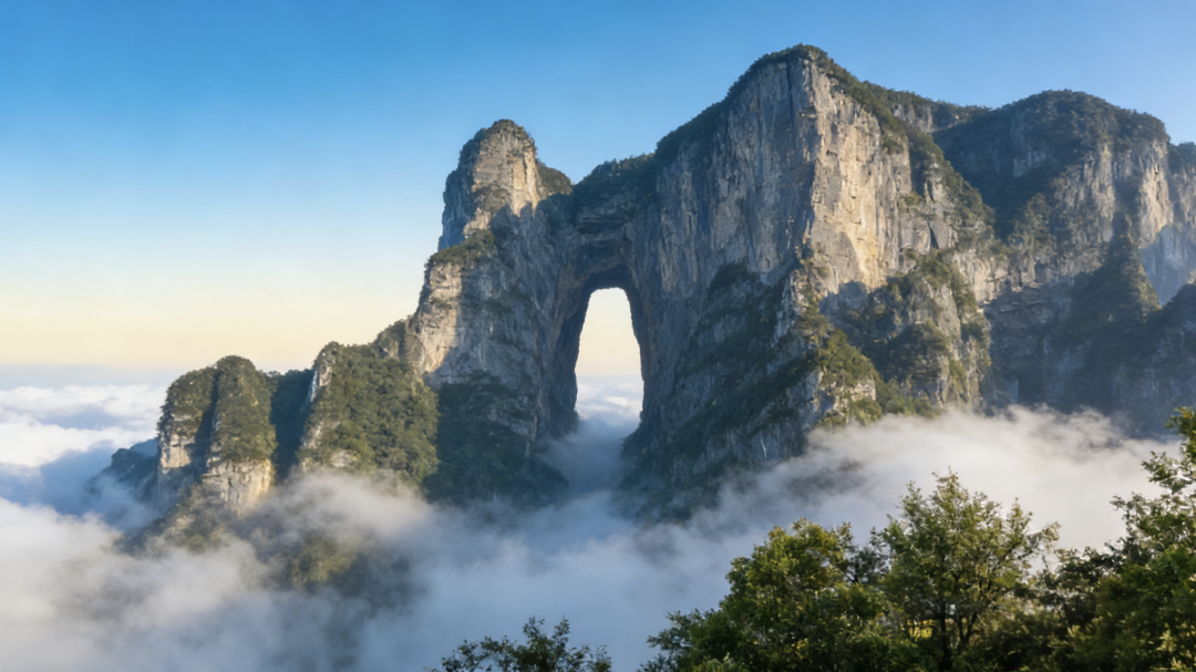 今天我们将前往素有"张家界之魂""武陵之魂"和"湘西第一神山"之美誉的【天门山】,天门山因自然奇观天门洞而得名,也因天门洞而蜚声世界,运气好的话可以看到绝美云海环绕着天门洞,穿行过天门洞扶梯,感受999级天门栈道。