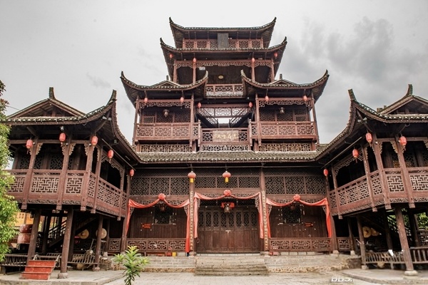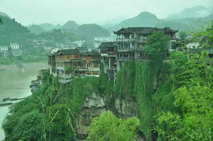 漫步古镇那四通八达的街道,走在古老的石块路上,看着河道人行道路两旁的古典建筑。那些用黑黄的木棍支撑着的吊脚楼,几百年来依然保存着昔日那无数的辉煌和雄伟。从它们身上,仿佛看到古镇往日的历史。古镇传统的剃头铺、商铺等至今依然存在。整座古镇道路都用青黑石板路重新修整铺平,踩在上面非常舒服。街道两旁的房屋全系青色瓦片盖底,红漆木板,圆柱承重,古朴凝重中透出原汁原味湘渝土家、苗家风韵。