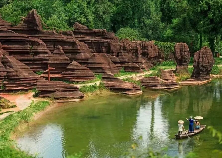 清晨游览宁静的【芙蓉镇】,适时我们的大巴车前往红石林景区,清风拂面过后,我们来到了【红石林国家地质公园】,一个被誉为张家界至凤凰旅游黄金走廊上的一颗明珠,是中国唯一的红色碳酸盐石林,与"芙蓉镇"隔酉水河相望,景区集岩溶,峡谷,溶洞,湖泉,于一体,被誉为"武陵第一奇观".