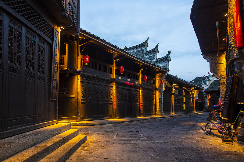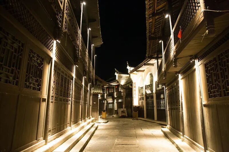 晚上漫步【里耶古城】; 里耶古镇为湘西四大名镇之一(其他三个古镇为:王村、浦市、茶峒),大小近半座县城,“里耶”是土家语,意为“开天”“拖土”。古镇邻江而建,一条幽长的小巷在翻新后干净光鲜,两边排满木制房屋,还有不少土家风情的吊脚楼,仍住着当地居民。这条街也正是电视剧《血色湘西》的拍摄地点。顺着延伸的街巷一路走到底,眼前便是沈从文小说里说到的酉水。目前,里耶真正保留古镇原貌的老街是北街;