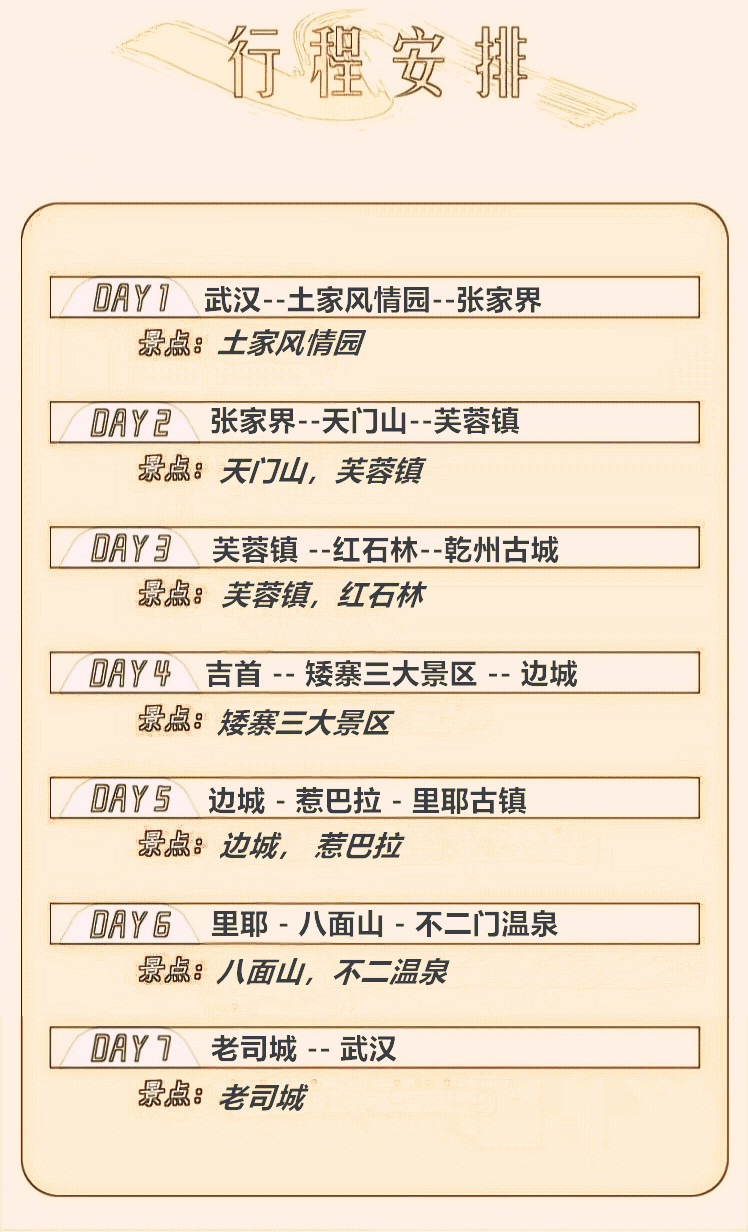 游玩景点:天门山,芙蓉镇