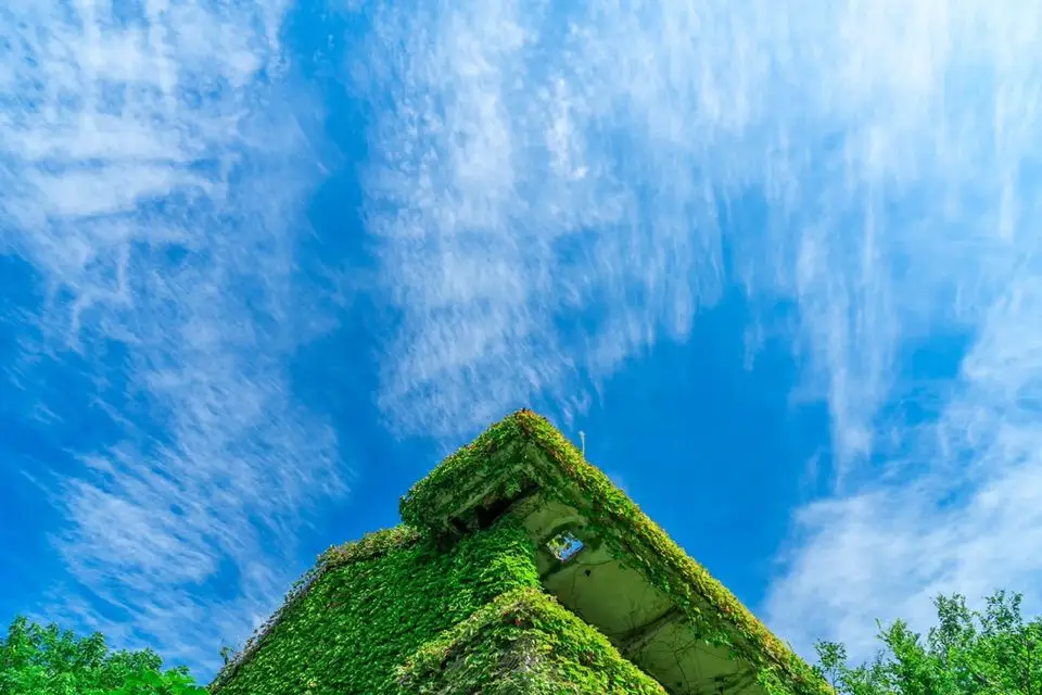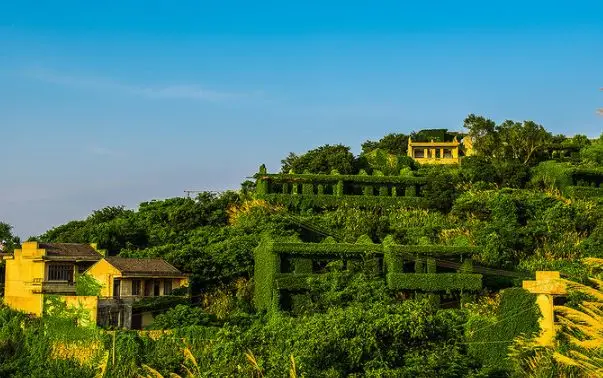 用满身的绿意将每一栋无人的建筑都缠绕出了生机与活力。