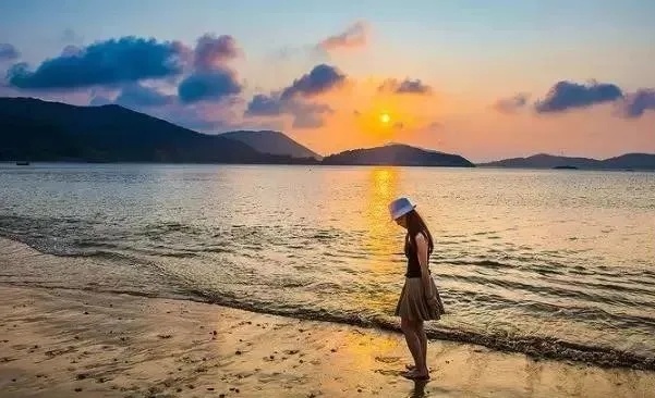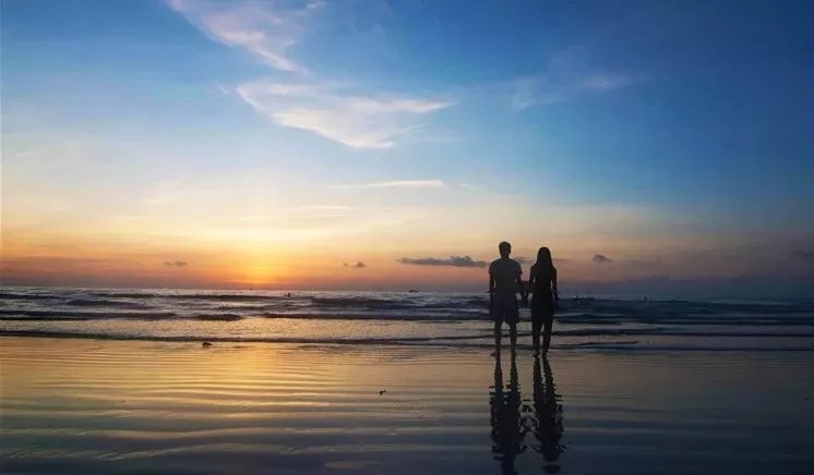 漫步在夕阳下的沙滩,