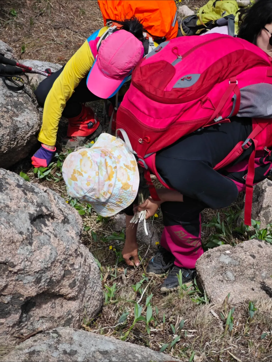 防滑登山/徒步鞋、双肩小背包、手套、小锄头/铲子、1.5升水、午餐干粮、帽子等