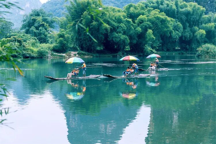 遇龙河被誉为世界上一流的人类共有的自然遗产,两岸一派田园风光,赏心悦目。天平绿洲、情侣相拥、平湖倒影、夏棠胜境、双流古渡、梦幻河谷等等,让人仿佛进入了天人合一的诗意境界,返璞归真的自由天地。遇龙河漂流,还有“深潭、险滩、流泉、飞瀑”的佳景,是岩溶地形发育典型、丰富和集中地带,集中了桂林山水的精华,令人有“舟行碧波上,人在画中游”之感。