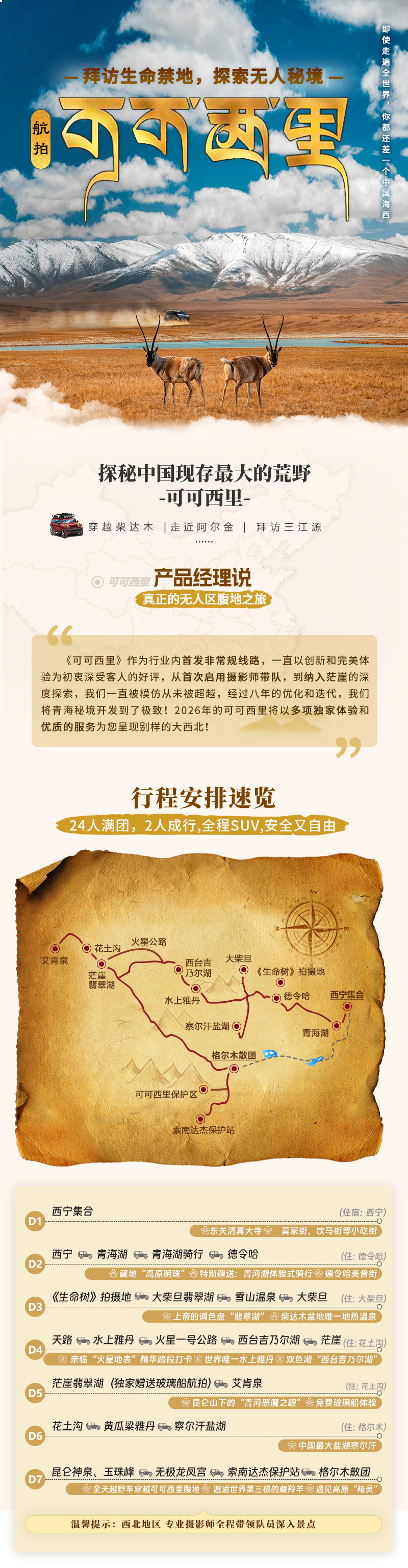 3.领队会根据当天车况、路况以及天气等情况调整有人区和无人区的游览顺序;