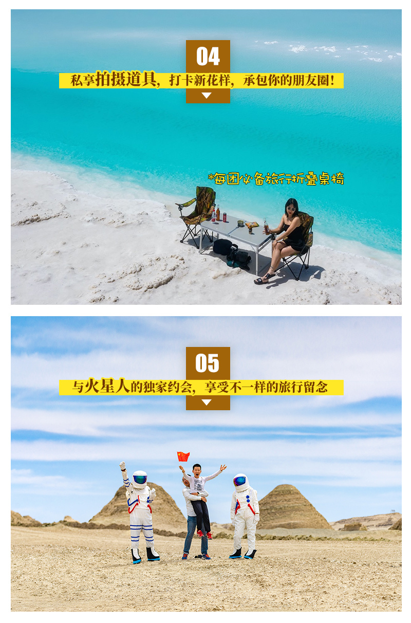 2.目前茫崖花土沟地区景点均属于未开发状态,景区接待能力有限,请小伙伴们提前准备自己的午餐,以防不可抗力因素无法按时回到市区补给;