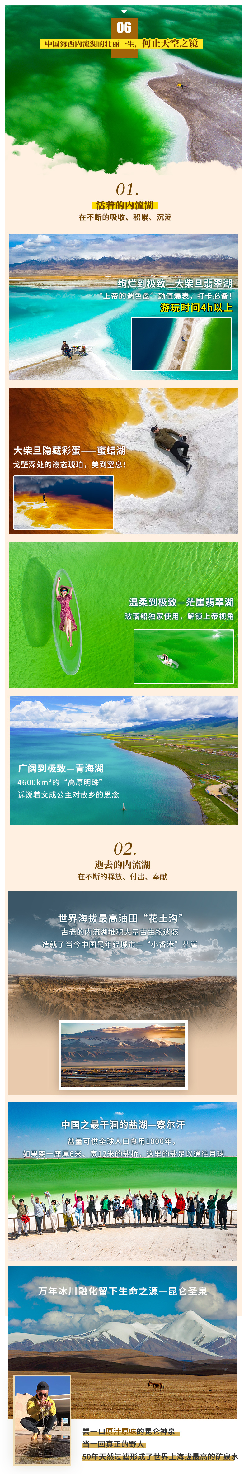 现在,抖音上有很多有趣的拍摄【蜜蜡湖】的小视频,这也是柴旦木地区唯一一个琥珀色的盐湖,是非常小众的目的地,并且非常出片,大家可以借鉴参考,打卡蜜蜡湖,最好能发掘一些有趣的玩法,刷屏网络。尽兴嗨玩后,适时离开,前往大柴旦入住休息。