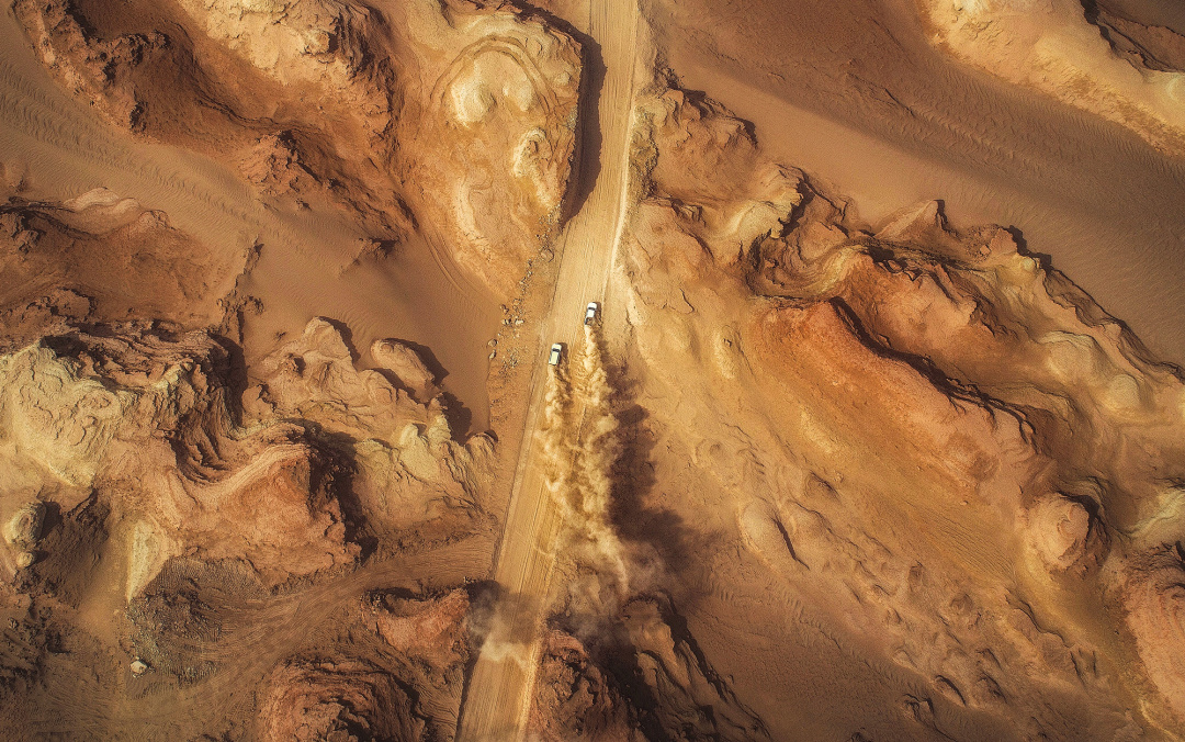 吃过午饭,稍事休息后,我们将前往昆仑山脚下的一处秘地,这里是【中国四大无人区】(羌塘,罗布泊,可可西里,阿尔金山)的交汇处,历史上也是人烟稀少的地方,大自然赋予了茫崖独特的地貌特征,同时也有令人连连称奇的美景。而我们即将前往的阿拉尔草原深处,就有一处惊艳众生的秘境,它就是汩汩喷涌了上千年的地热喷泉【“恶魔之眼”艾肯泉】,从空中俯瞰,它形似眼睛的医学剖面图,脉络清晰,栩栩如生,在它周围点缀着许多青色的小泉眼,在上帝视角下,宛如一只振翅高飞的凤凰。