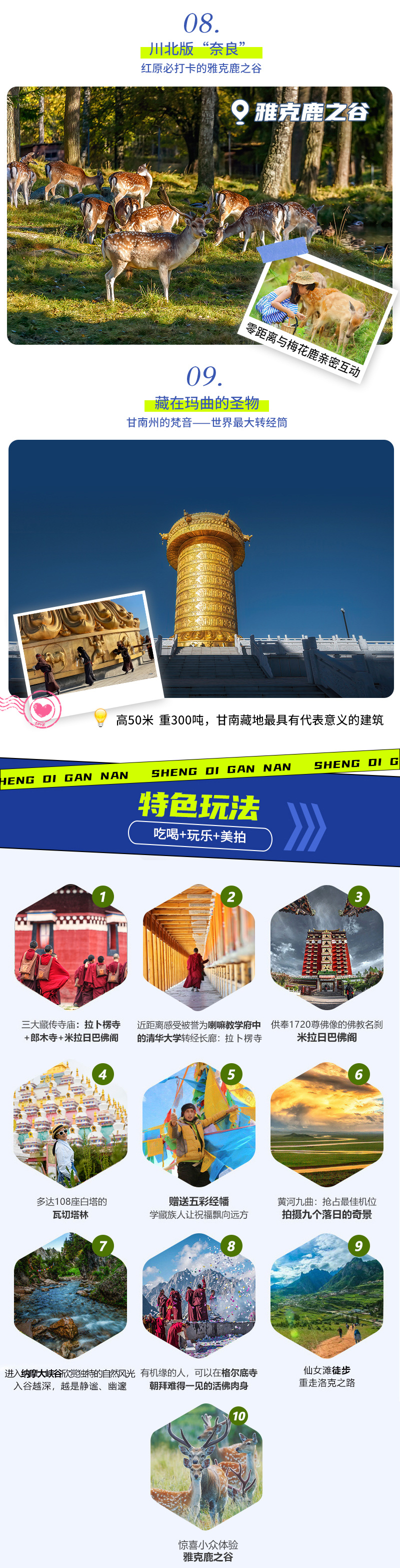 【门票】甘肃郎木寺(参考价格30元/人),莲宝叶则景交车(莲宝叶则景区景交路线较多,参考价格20-70元/人)、扎尕那景交车参考价格40元/人),娘玛寺暂未收费,后期若收费烦请自理;
