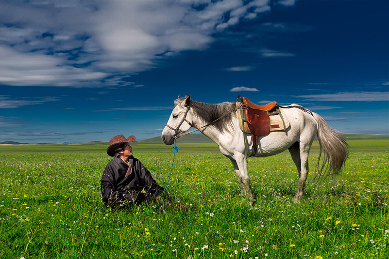 沿着郎木寺走过草原,有一条明晃晃的小河,将两岸的建筑珍珠般串了起来,跨过源头再向里走,峭壁悬岩,危峰兀立,直冲云霄。这便是【纳摩大峡谷】,峡谷悠悠的白云在山峰之间飘游,沟中央裸石累累,两旁花草茂密,繁花似锦,花香醉人,流水时断时续,偶尔还有小动物从面前逃遁而去。入谷越深,越是静谧、幽邃,这里尚未被开发,走到尽头有一片开阔的草甸映入眼帘,牛羊慵懒地啃食着青草,恍若世外桃源。